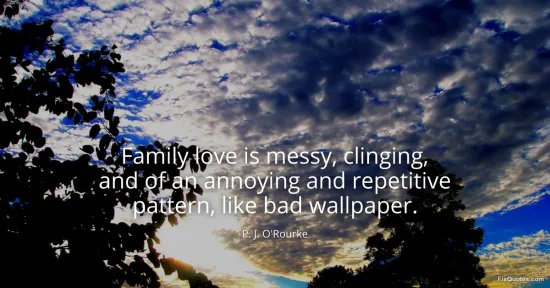O'Rourke, P. J. (2026, January 15). Family love is messy, clinging, and of an annoying and repetitive pattern, like bad wallpaper. FixQuotes. https://fixquotes.com/quotes/family-love-is-messy-clinging-and-of-an-annoying-1188/