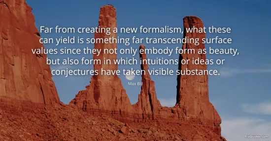 Bill, Max. (2026, January 16). Far from creating a new formalism, what these can yield is something far transcending surface values since they not only embody form as beauty, but also form in which intuitions or ideas or conjectures have taken visible substance. FixQuotes. https://fixquotes.com/quotes/far-from-creating-a-new-formalism-what-these-can-114764/