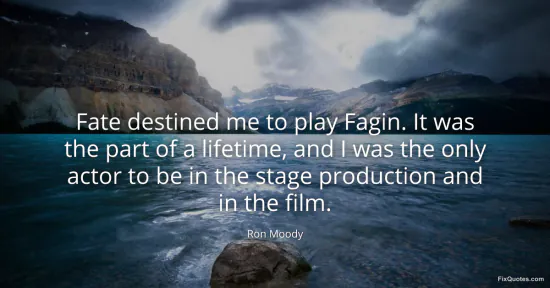 Moody, Ron. "Fate destined me to play Fagin. It was the part of a lifetime, and I was the only actor to be in the stage production and in the film." FixQuotes. January 15, 2026. https://fixquotes.com/quotes/fate-destined-me-to-play-fagin-it-was-the-part-of-164498/.