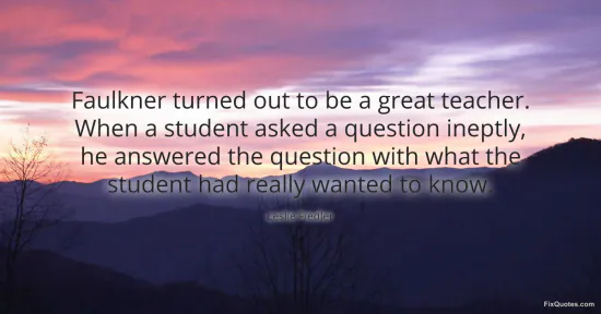 "Faulkner turned out to be a great teacher. When a student asked a question ineptly, he answered the question with what the student had really wanted to know"