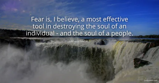 Sadat, Anwar. (2026, January 16). Fear is, I believe, a most effective tool in destroying the soul of an individual - and the soul of a people. FixQuotes. https://fixquotes.com/quotes/fear-is-i-believe-a-most-effective-tool-in-126323/