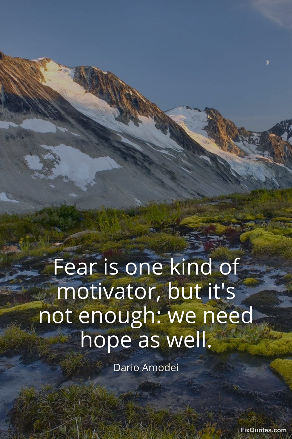 Amodei, Dario. (2026, February 16). Fear is one kind of motivator, but it's not enough: we need hope as well. FixQuotes. https://fixquotes.com/quotes/fear-is-one-kind-of-motivator-but-its-not-enough-185489/