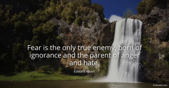 Albert, Edward. (2026, January 15). Fear is the only true enemy, born of ignorance and the parent of anger and hate. FixQuotes. https://fixquotes.com/quotes/fear-is-the-only-true-enemy-born-of-ignorance-and-50692/