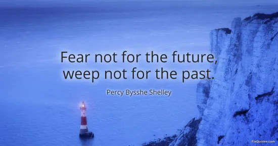 Evidence: Canto XI, stanza XVIII. The line appears verbatim as “Fear not the future, weep not for the past.” in Shelley’s poem The Revolt of Islam, Canto XI, stanza XVIII. This is the author’s own work (primary source). Note that many modern quote sites add “for” ("Fear not for the future"), but the poem’s... Other candidates (2) Weep Not for the Past (Paul Alan Fahey, 2013) compilation95.0% ... Fear not for the future , weep not for the past . " -Percy Bysshe Shelley Leslie put another log on the hearth fi... Percy Bysshe Shelley (Percy Bysshe Shelley) compilation90.0% f earthquake and eclipse canto v st 23 fear not the future weep not for the past |