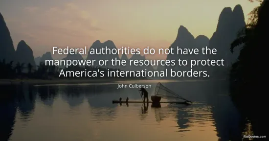 Culberson, John. "Federal authorities do not have the manpower or the resources to protect America's international borders." FixQuotes. January 16, 2026. https://fixquotes.com/quotes/federal-authorities-do-not-have-the-manpower-or-118263/.