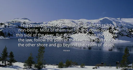 Horace. (2026, February 20). Few cross the river of time and are able to reach non-being. Most of them run up and down only on this side of the river. But those who, when they know the law, follow the path of the law, they shall reach the other shore and go beyond the realm of death. FixQuotes. https://fixquotes.com/quotes/few-cross-the-river-of-time-and-are-able-to-reach-8642/