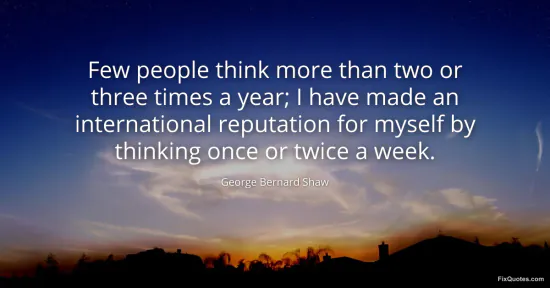 Shaw, George Bernard. "Few people think more than two or three times a year; I have made an international reputation for myself by thinking once or twice a week." FixQuotes. January 17, 2026. https://fixquotes.com/quotes/few-people-think-more-than-two-or-three-times-a-29122/.