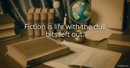 James, Clive. "Fiction is life with the dull bits left out." FixQuotes. Accessed February 2, 2026. https://fixquotes.com/quotes/fiction-is-life-with-the-dull-bits-left-out-135013/.