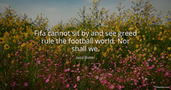 Blatter’s line is a tidy piece of institutional self-mythmaking: FIFA cast as the last adult in the room, watching over a sport allegedly threatened by money’s corrupting pull. The phrasing leans hard on moral emergency. “Cannot sit by” frames inaction as complicity; “greed” is left conveniently undefined, a villain broad enough to fit whichever target is politically useful in the moment. Then comes the clincher: “Nor shall we.” It’s a miniature oath, borrowing the cadence of wartime resolve to make bureaucracy sound like bravery.