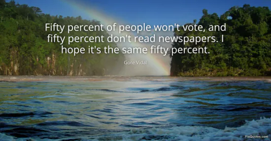 Vidal, Gore. (2026, January 17). Fifty percent of people won't vote, and fifty percent don't read newspapers. I hope it's the same fifty percent. FixQuotes. https://fixquotes.com/quotes/fifty-percent-of-people-wont-vote-and-fifty-68626/