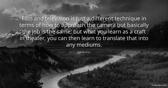 Morton, Joe. (2026, January 17). Film and television is just a different technique in terms of how to approach the camera but basically the job is the same; but what you learn as a craft in theater, you can then learn to translate that into any mediums. FixQuotes. https://fixquotes.com/quotes/film-and-television-is-just-a-different-technique-60662/