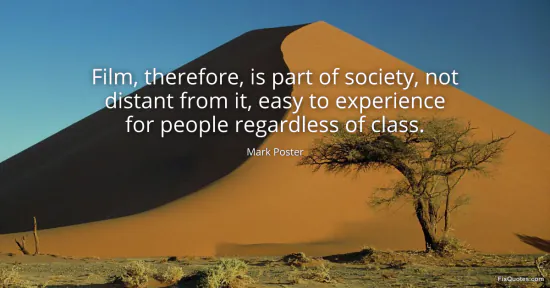 Poster, Mark. "Film, therefore, is part of society, not distant from it, easy to experience for people regardless of class." FixQuotes. January 15, 2026. https://fixquotes.com/quotes/film-therefore-is-part-of-society-not-distant-130372/.