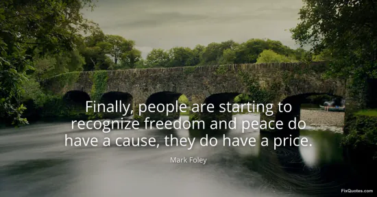 Foley, Mark. "Finally, people are starting to recognize freedom and peace do have a cause, they do have a price." FixQuotes. January 15, 2026. https://fixquotes.com/quotes/finally-people-are-starting-to-recognize-freedom-142780/.
