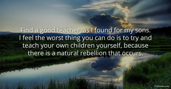 Emerson, Keith. (2026, January 17). Find a good teacher, as I found for my sons. I feel the worst thing you can do is to try and teach your own children yourself, because there is a natural rebellion that occurs. FixQuotes. https://fixquotes.com/quotes/find-a-good-teacher-as-i-found-for-my-sons-i-feel-81012/