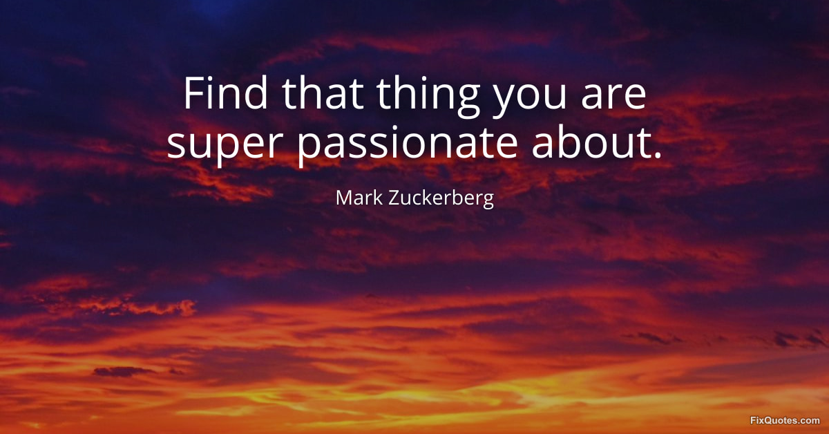 Zuckerberg, Mark. (2026, January 18). Find that thing you are super passionate about. FixQuotes. https://fixquotes.com/quotes/find-that-thing-you-are-super-passionate-about-184045/