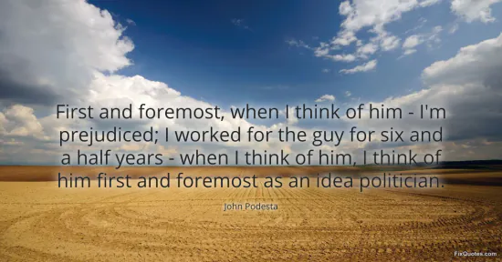 Podesta, John. "First and foremost, when I think of him - I'm prejudiced; I worked for the guy for six and a half years - when I think of him, I think of him first and foremost as an idea politician." FixQuotes. January 17, 2026. https://fixquotes.com/quotes/first-and-foremost-when-i-think-of-him-im-60025/.