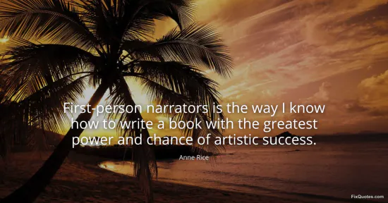 Rice, Anne. (2026, January 15). First-person narrators is the way I know how to write a book with the greatest power and chance of artistic success. FixQuotes. https://fixquotes.com/quotes/first-person-narrators-is-the-way-i-know-how-to-33663/