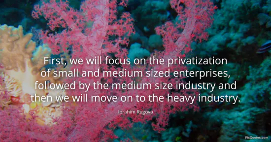 Rugova, Ibrahim. (2026, January 17). First, we will focus on the privatization of small and medium sized enterprises, followed by the medium size industry and then we will move on to the heavy industry. FixQuotes. https://fixquotes.com/quotes/first-we-will-focus-on-the-privatization-of-small-60586/