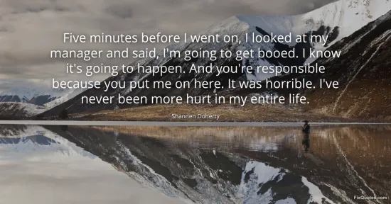 Doherty, Shannen. (2026, January 17). Five minutes before I went on, I looked at my manager and said, I'm going to get booed. I know it's going to happen. And you're responsible because you put me on here. It was horrible. I've never been more hurt in my entire life. FixQuotes. https://fixquotes.com/quotes/five-minutes-before-i-went-on-i-looked-at-my-65301/
