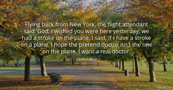 Edwards, Anthony. "Flying back from New York, the flight attendant said 'God, I wished you were here yesterday, we had a stroke on the plane. I said, if I have a stroke on a plane, I hope the pretend doctor isn't the one on the plane. I want a real doctor." FixQuotes. January 16, 2026. https://fixquotes.com/quotes/flying-back-from-new-york-the-flight-attendant-134316/.