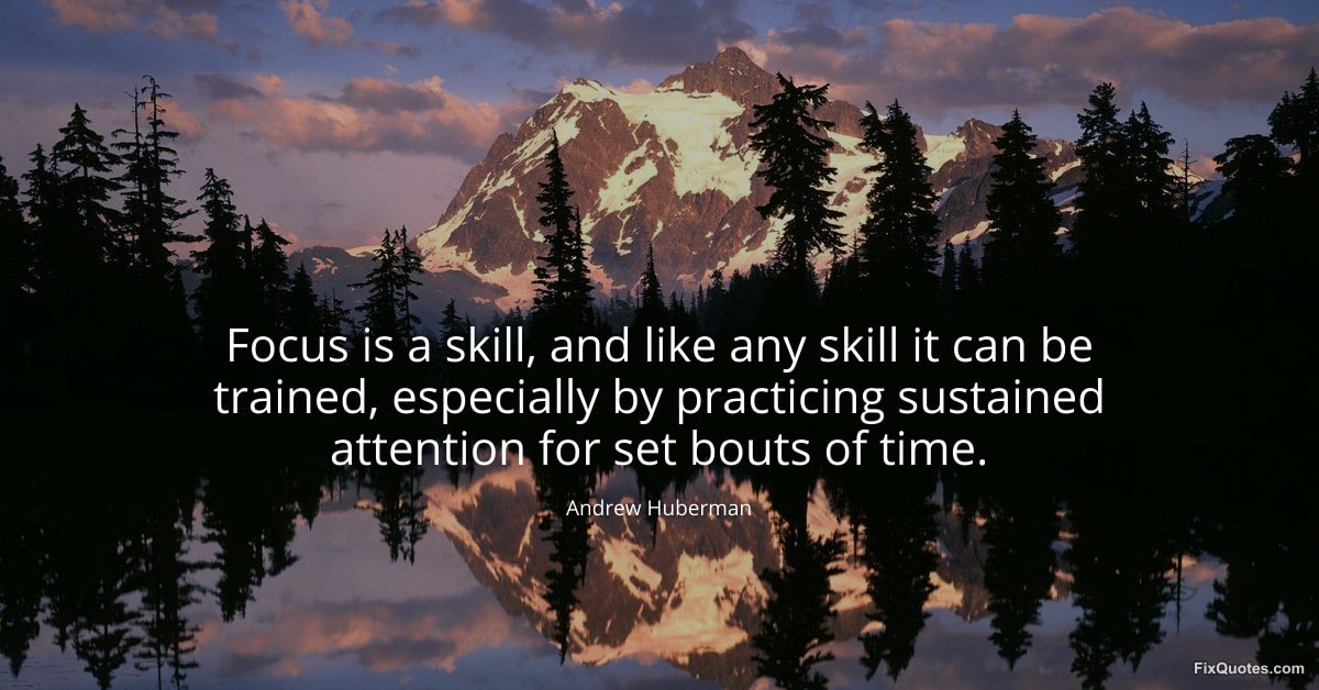 Huberman, Andrew. (2026, January 24). Focus is a skill, and like any skill it can be trained, especially by practicing sustained attention for set bouts of time. FixQuotes. https://fixquotes.com/quotes/focus-is-a-skill-and-like-any-skill-it-can-be-184121/