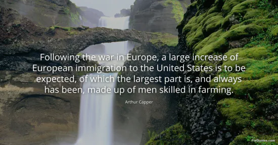 Capper, Arthur. (2026, February 19). Following the war in Europe, a large increase of European immigration to the United States is to be expected, of which the largest part is, and always has been, made up of men skilled in farming. FixQuotes. https://fixquotes.com/quotes/following-the-war-in-europe-a-large-increase-of-34462/