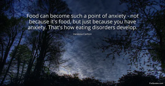 Carlton, Vanessa. (2026, January 16). Food can become such a point of anxiety - not because it's food, but just because you have anxiety. That's how eating disorders develop. FixQuotes. https://fixquotes.com/quotes/food-can-become-such-a-point-of-anxiety-not-134056/