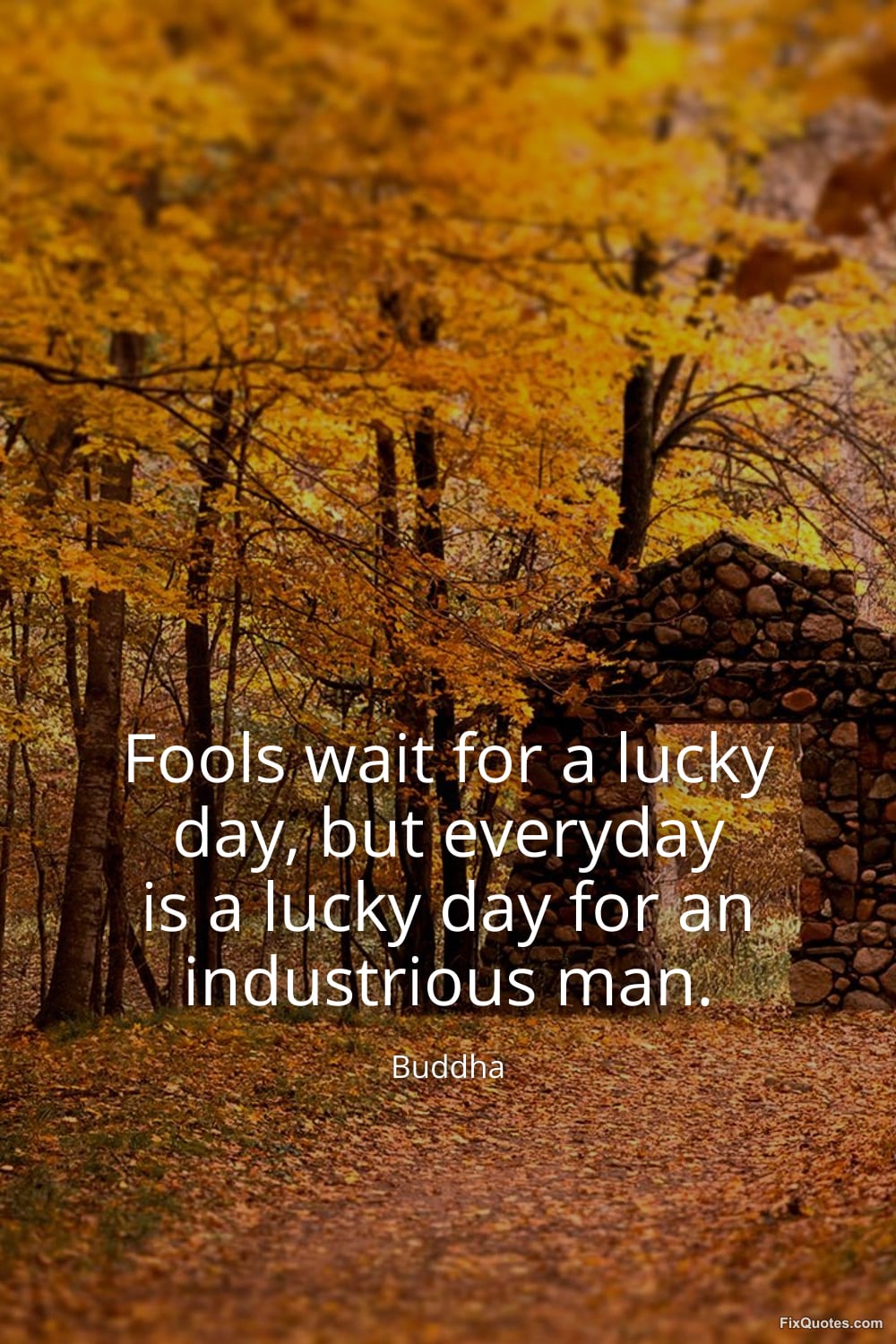 Buddha. (2026, March 10). Fools wait for a lucky day, but everyday is a lucky day for an industrious man. FixQuotes. https://fixquotes.com/quotes/fools-wait-for-a-lucky-day-but-everyday-is-a-185847/