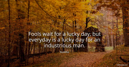 Buddha. "Fools wait for a lucky day, but everyday is a lucky day for an industrious man." FixQuotes. March 10, 2026. https://fixquotes.com/quotes/fools-wait-for-a-lucky-day-but-everyday-is-a-185847/.