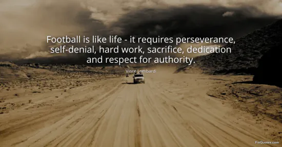 Lombardi, Vince. (2026, January 15). Football is like life - it requires perseverance, self-denial, hard work, sacrifice, dedication and respect for authority. FixQuotes. https://fixquotes.com/quotes/football-is-like-life-it-requires-perseverance-25028/
