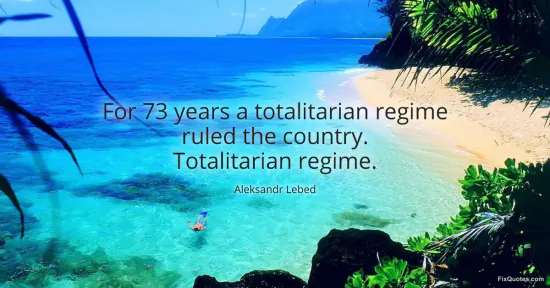 Lebed, Aleksandr. (2026, January 16). For 73 years a totalitarian regime ruled the country. Totalitarian regime. FixQuotes. https://fixquotes.com/quotes/for-73-years-a-totalitarian-regime-ruled-the-137618/
