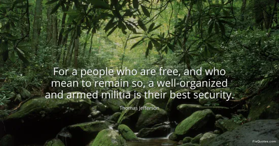 Jefferson, Thomas. "For a people who are free, and who mean to remain so, a well-organized and armed militia is their best security." FixQuotes. January 17, 2026. https://fixquotes.com/quotes/for-a-people-who-are-free-and-who-mean-to-remain-33456/.