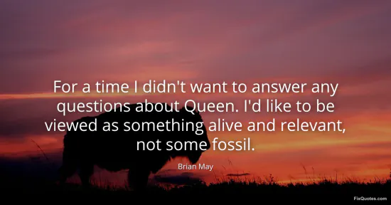 May, Brian. (2026, January 17). For a time I didn't want to answer any questions about Queen. I'd like to be viewed as something alive and relevant, not some fossil. FixQuotes. https://fixquotes.com/quotes/for-a-time-i-didnt-want-to-answer-any-questions-37820/