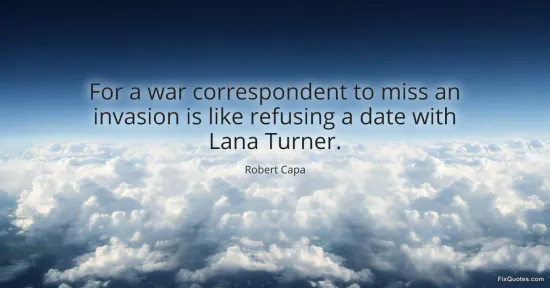 Capa, Robert. (2026, January 18). For a war correspondent to miss an invasion is like refusing a date with Lana Turner. FixQuotes. https://fixquotes.com/quotes/for-a-war-correspondent-to-miss-an-invasion-is-4047/