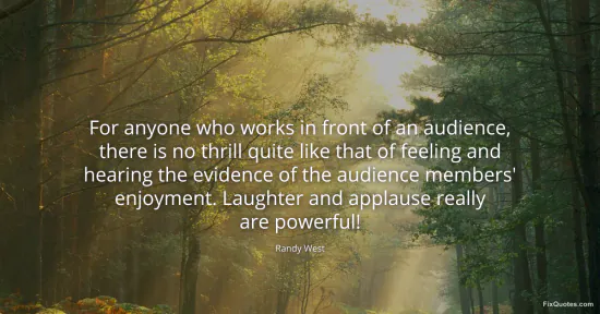 West, Randy. (2026, February 18). For anyone who works in front of an audience, there is no thrill quite like that of feeling and hearing the evidence of the audience members' enjoyment. Laughter and applause really are powerful! FixQuotes. https://fixquotes.com/quotes/for-anyone-who-works-in-front-of-an-audience-64256/