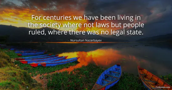Nazarbayev, Nursultan. "For centuries we have been living in the society where not laws but people ruled, where there was no legal state." FixQuotes. January 16, 2026. https://fixquotes.com/quotes/for-centuries-we-have-been-living-in-the-society-83200/.
