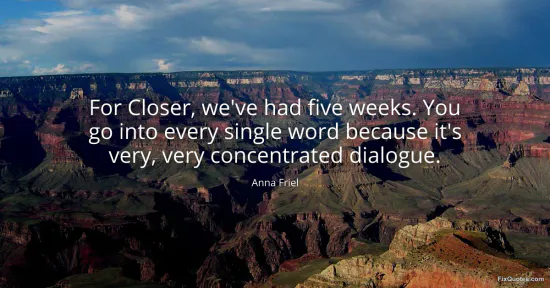 "For Closer, we've had five weeks. You go into every single word because it's very, very concentrated dialogue"