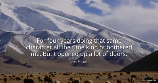 Bridges, Lloyd. "For four years doing that same character all the time kind of bothered me. Butit opened up a lot of doors." FixQuotes. January 16, 2026. https://fixquotes.com/quotes/for-four-years-doing-that-same-character-all-the-104656/.