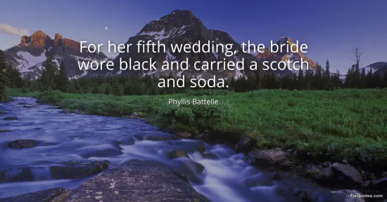 Battelle, Phyllis. "For her fifth wedding, the bride wore black and carried a scotch and soda." FixQuotes. January 15, 2026. https://fixquotes.com/quotes/for-her-fifth-wedding-the-bride-wore-black-and-147846/.