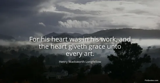 Longfellow, Henry Wadsworth. "For his heart was in his work, and the heart giveth grace unto every art." FixQuotes. January 17, 2026. https://fixquotes.com/quotes/for-his-heart-was-in-his-work-and-the-heart-31479/.