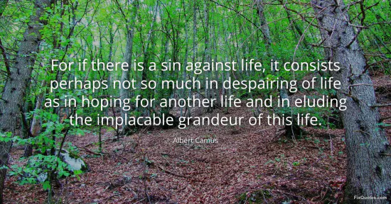 "For if there is a sin against life, it consists perhaps not so much in despairing of life as in hoping for another life and in eluding the implacable grandeur of this life"