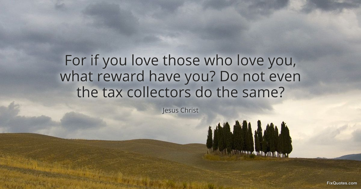 Christ, Jesus. "For if you love those who love you, what reward have you? Do not even the tax collectors do the same?" FixQuotes. February 18, 2026. https://fixquotes.com/quotes/for-if-you-love-those-who-love-you-what-reward-185627/.