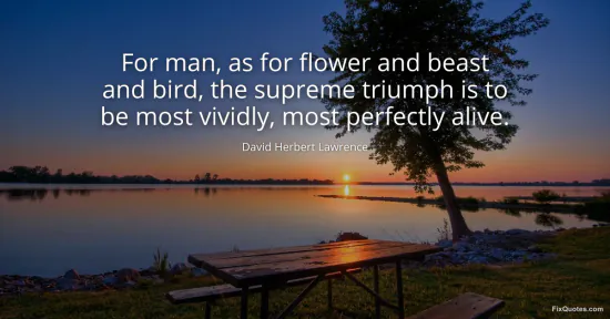Lawrence, David Herbert. "For man, as for flower and beast and bird, the supreme triumph is to be most vividly, most perfectly alive." FixQuotes. January 18, 2026. https://fixquotes.com/quotes/for-man-as-for-flower-and-beast-and-bird-the-6493/.