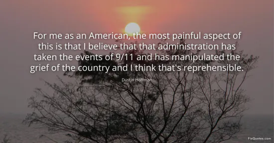 Hoffman, Dustin. (2026, January 16). For me as an American, the most painful aspect of this is that I believe that that administration has taken the events of 9/11 and has manipulated the grief of the country and I think that's reprehensible. FixQuotes. https://fixquotes.com/quotes/for-me-as-an-american-the-most-painful-aspect-of-110738/