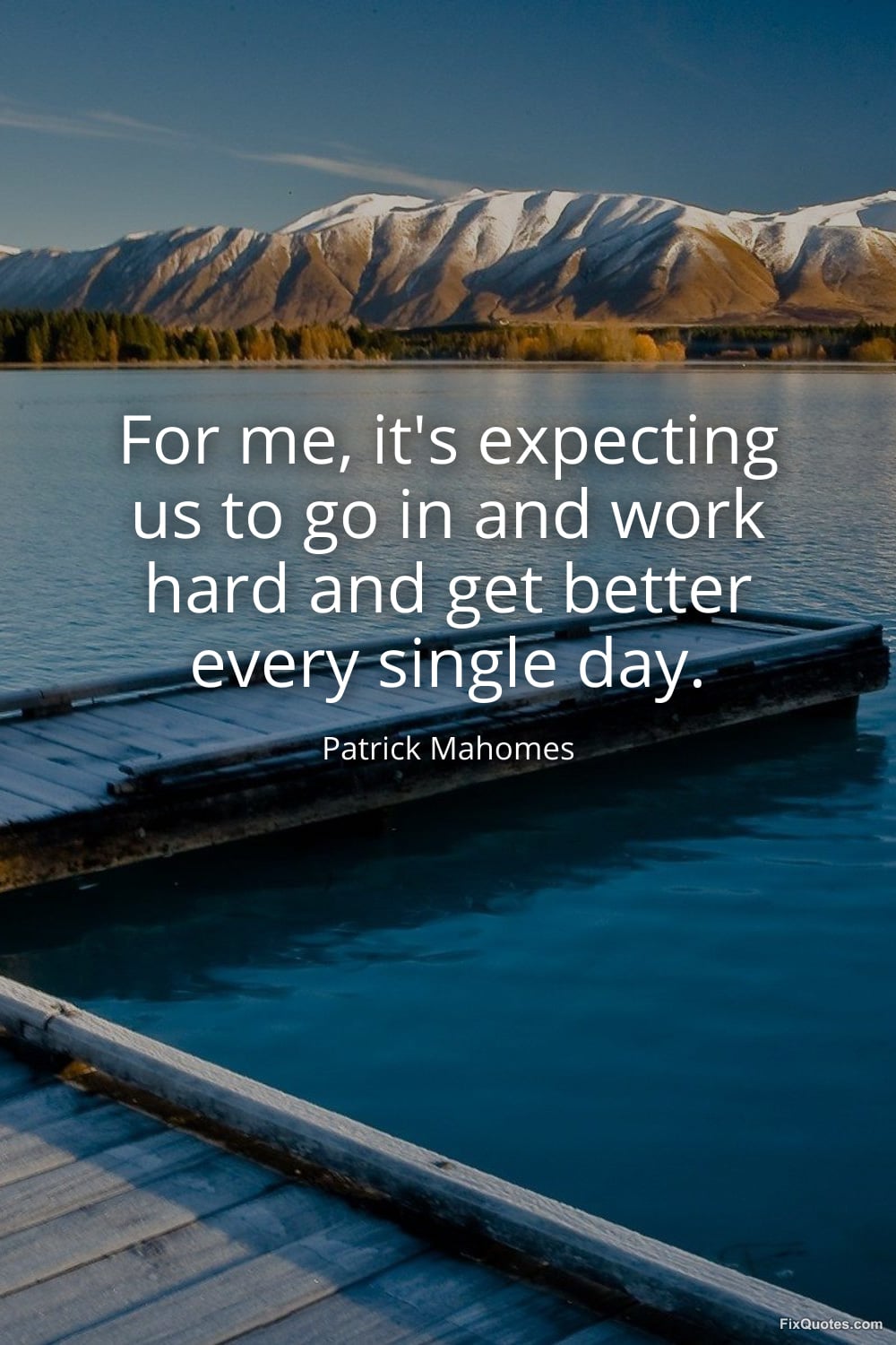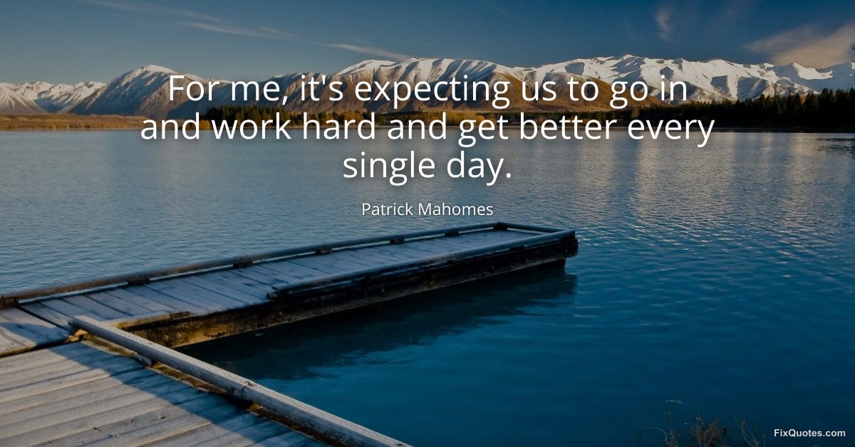 Mahomes, Patrick. (2026, March 19). For me, it's expecting us to go in and work hard and get better every single day. FixQuotes. https://fixquotes.com/quotes/for-me-its-expecting-us-to-go-in-and-work-hard-186165/