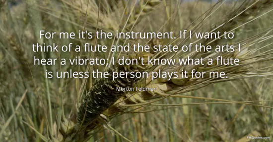 Feldman, Morton. "For me it's the instrument. If I want to think of a flute and the state of the arts I hear a vibrato; I don't know what a flute is unless the person plays it for me." FixQuotes. January 14, 2026. https://fixquotes.com/quotes/for-me-its-the-instrument-if-i-want-to-think-of-a-152484/.