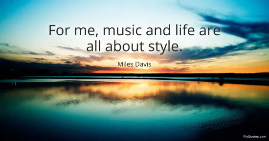 Davis, Miles. (2026, January 15). For me, music and life are all about style. FixQuotes. https://fixquotes.com/quotes/for-me-music-and-life-are-all-about-style-168150/