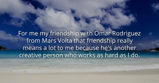 Frusciante, John. (2026, January 17). For me my friendship with Omar Rodriguez from Mars Volta that friendship really means a lot to me because he's another creative person who works as hard as I do. FixQuotes. https://fixquotes.com/quotes/for-me-my-friendship-with-omar-rodriguez-from-62798/