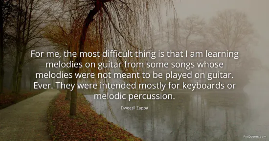 Zappa, Dweezil. (2026, January 15). For me, the most difficult thing is that I am learning melodies on guitar from some songs whose melodies were not meant to be played on guitar. Ever. They were intended mostly for keyboards or melodic percussion. FixQuotes. https://fixquotes.com/quotes/for-me-the-most-difficult-thing-is-that-i-am-59273/