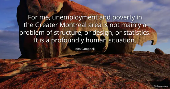 Campbell, Kim. (2026, January 17). For me, unemployment and poverty in the Greater Montreal area is not mainly a problem of structure, or design, or statistics. It is a profoundly human situation. FixQuotes. https://fixquotes.com/quotes/for-me-unemployment-and-poverty-in-the-greater-60512/